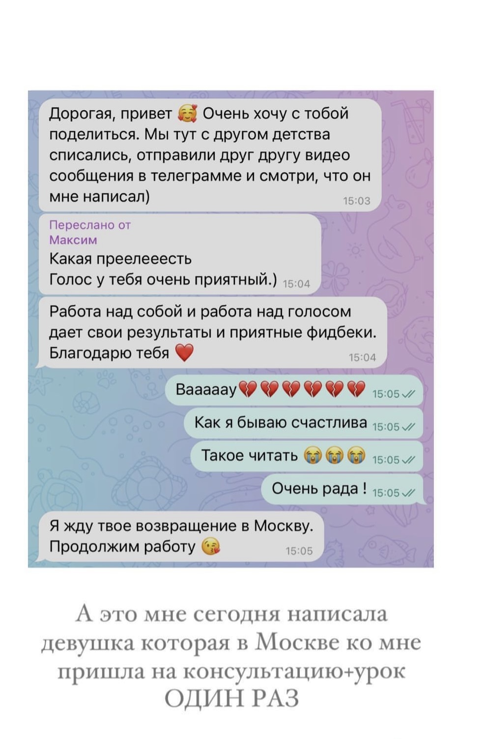 После одной такой встречи вы услышите изменения в своём голосе и почувствуете телесную свободу.